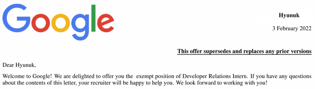 6개월마다 꼬박꼬박 지원했던 그 회사가, 3개의 회사에서 인턴쉽을 해도, 리트코드를 480 문제를 풀어도, 각종 플젝으로 이력서를 다듬어도 서류 단 한번을 통과시켜주지 않아서 여기 인턴으로는 못들어가겠다 생각했던 그 회사가