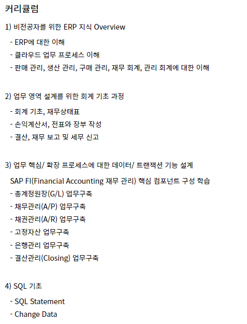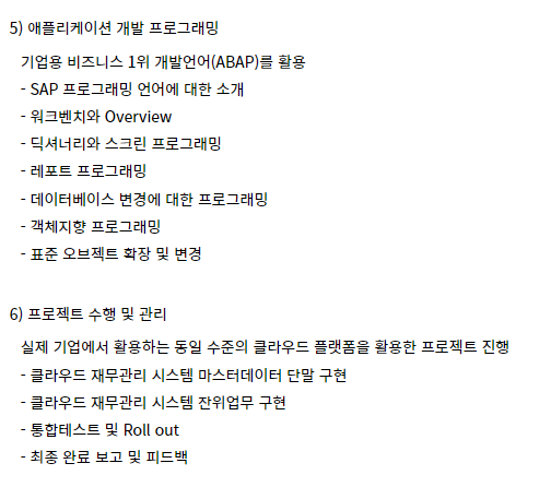 (아래는 새싹에서 개설될 예정인 sap abap개발자 과정 커리큘럼입니다. 참고가 될까해서 첨부했습니다.)
