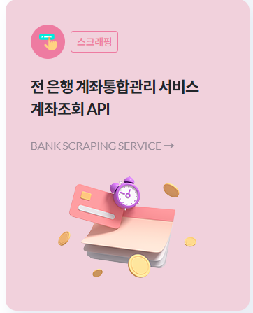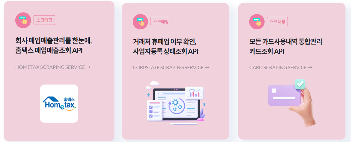 데이터 스크래핑 API : 계좌, 카드, 홈택스 매입매출 , 사업자휴폐업 조회