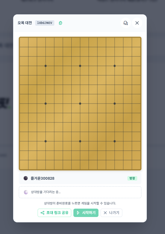 친구를 초대해서 대결하거나 AI와 대국, 랜덤대국을 두는 오목게임을 오픈했습니다.