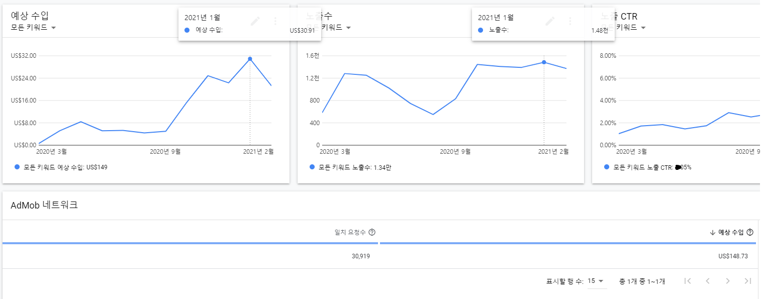 3개 앱을 출시를 했는데 출시후 지금까지 수익을 대충 살펴보니